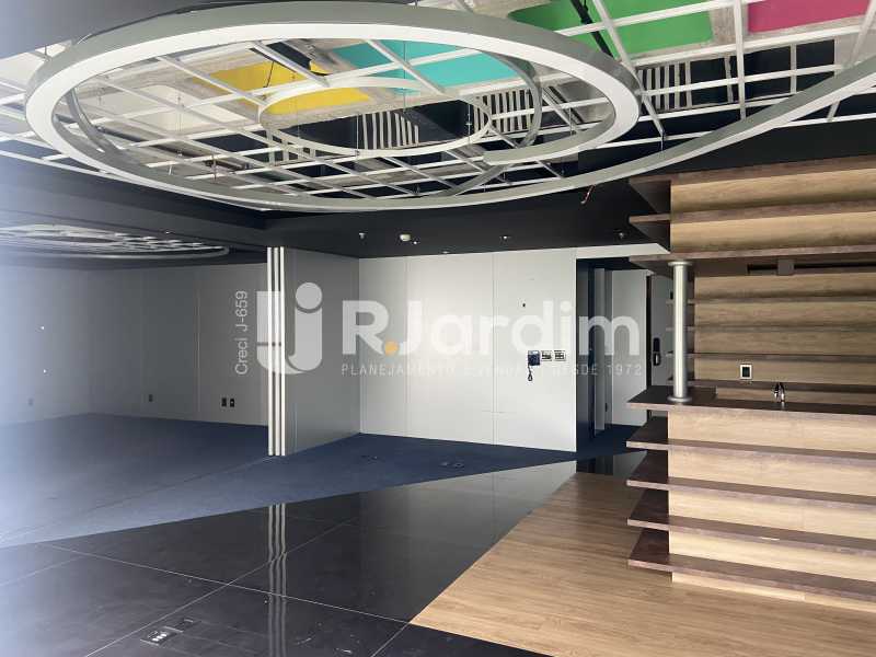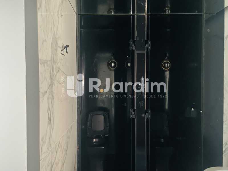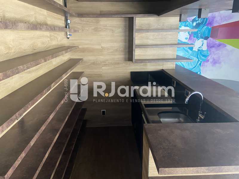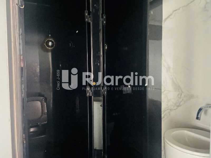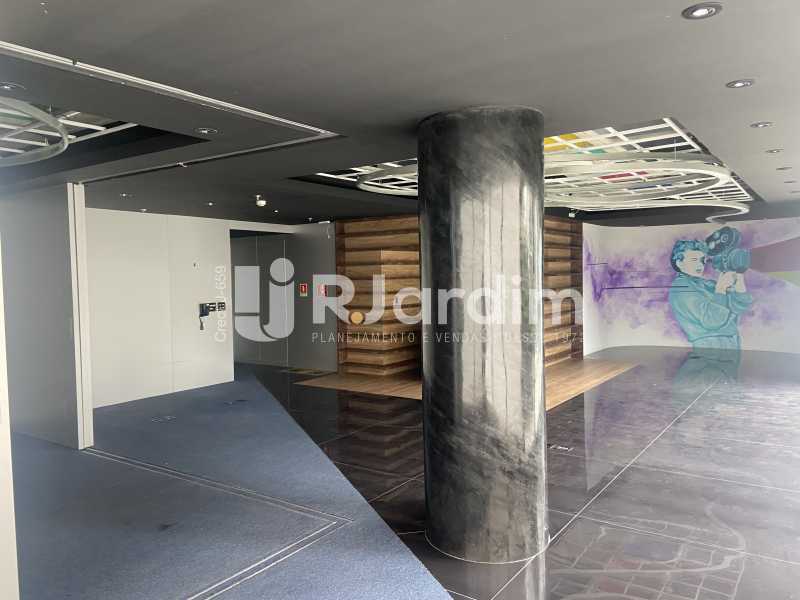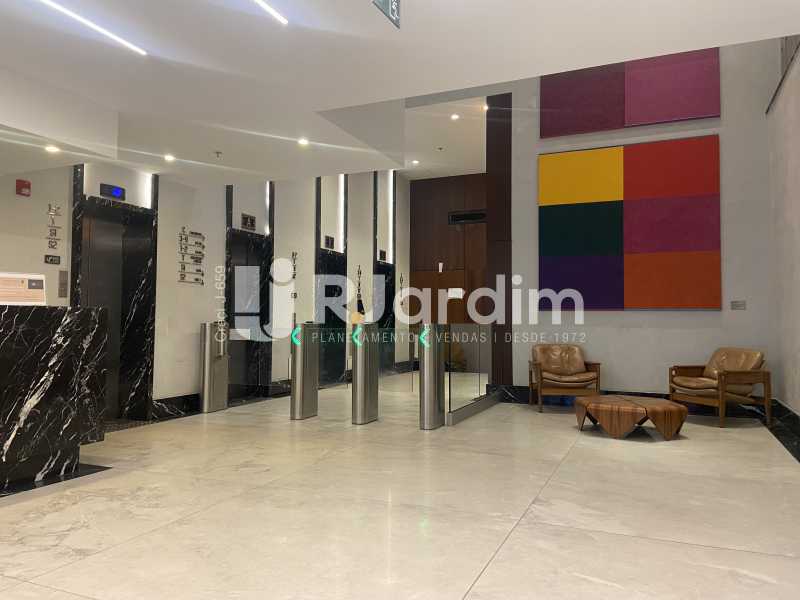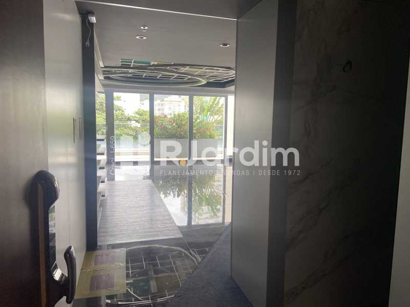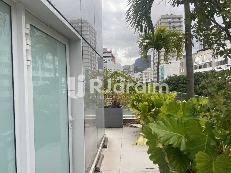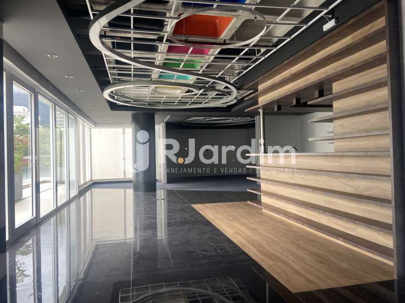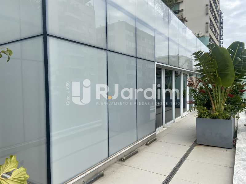 Sala comercial de alto padrão, 173 m² com varanda, dois banheiros e cozinha. Edifício corporativo Kinolplex Cine Leblon. Esquina Rua Carlos Góis (frente Rua Carlos Góis e para a Avenida Ataulfo de Paiva). Recepção, catraca e câmeras de segurança, elevadores. Vagas de garagem: rotativo (sala não possui vaga de garagem própria).